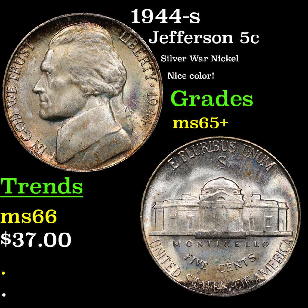 1944-s Jefferson Nickel 5c Grades GEM+ Unc.