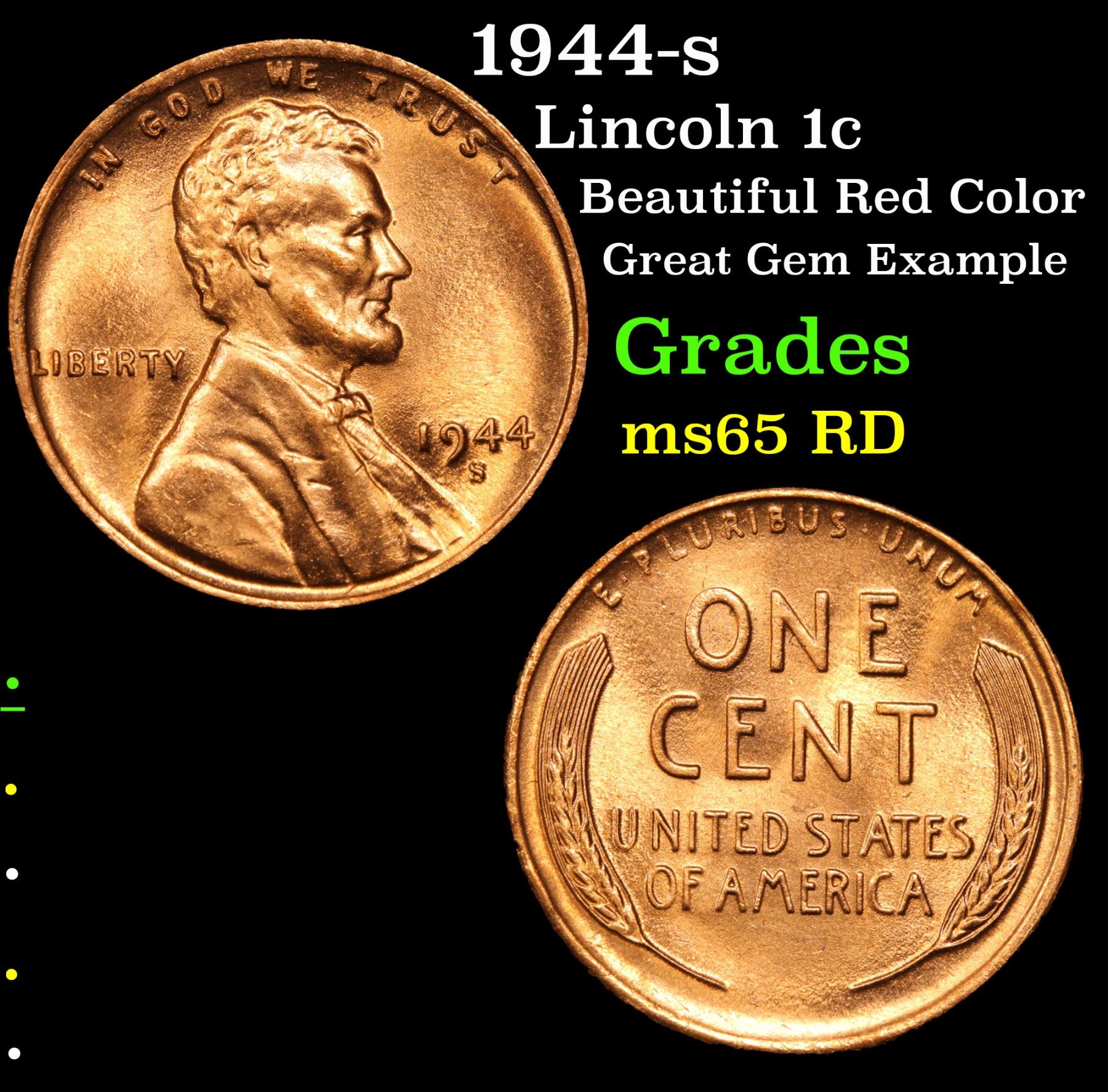 1944-s Lincoln Cent 1c Grades GEM Unc RD. Beautiful Red Color Great Gem Example