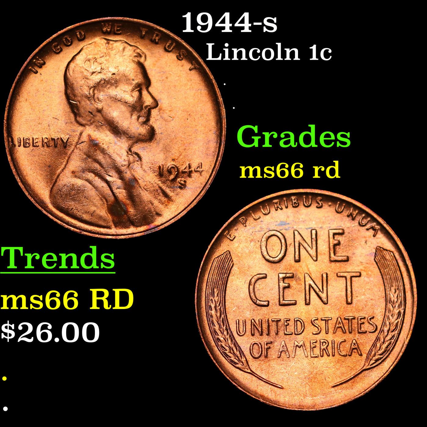 1944-s Lincoln Cent 1c Grades GEM+ Unc RD.