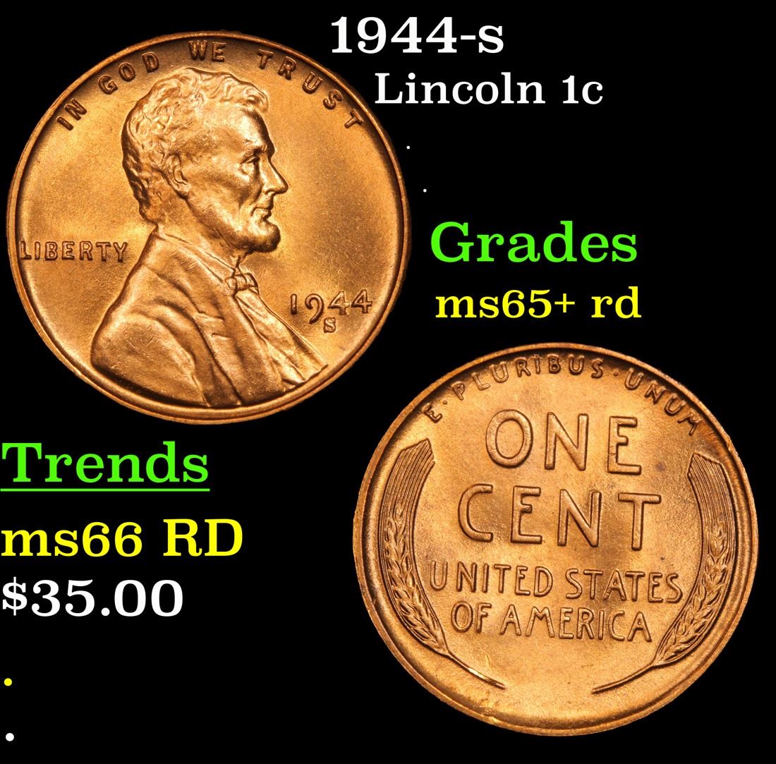 1944-s . . Lincoln Cent 1c Grades Gem+ Unc RD.