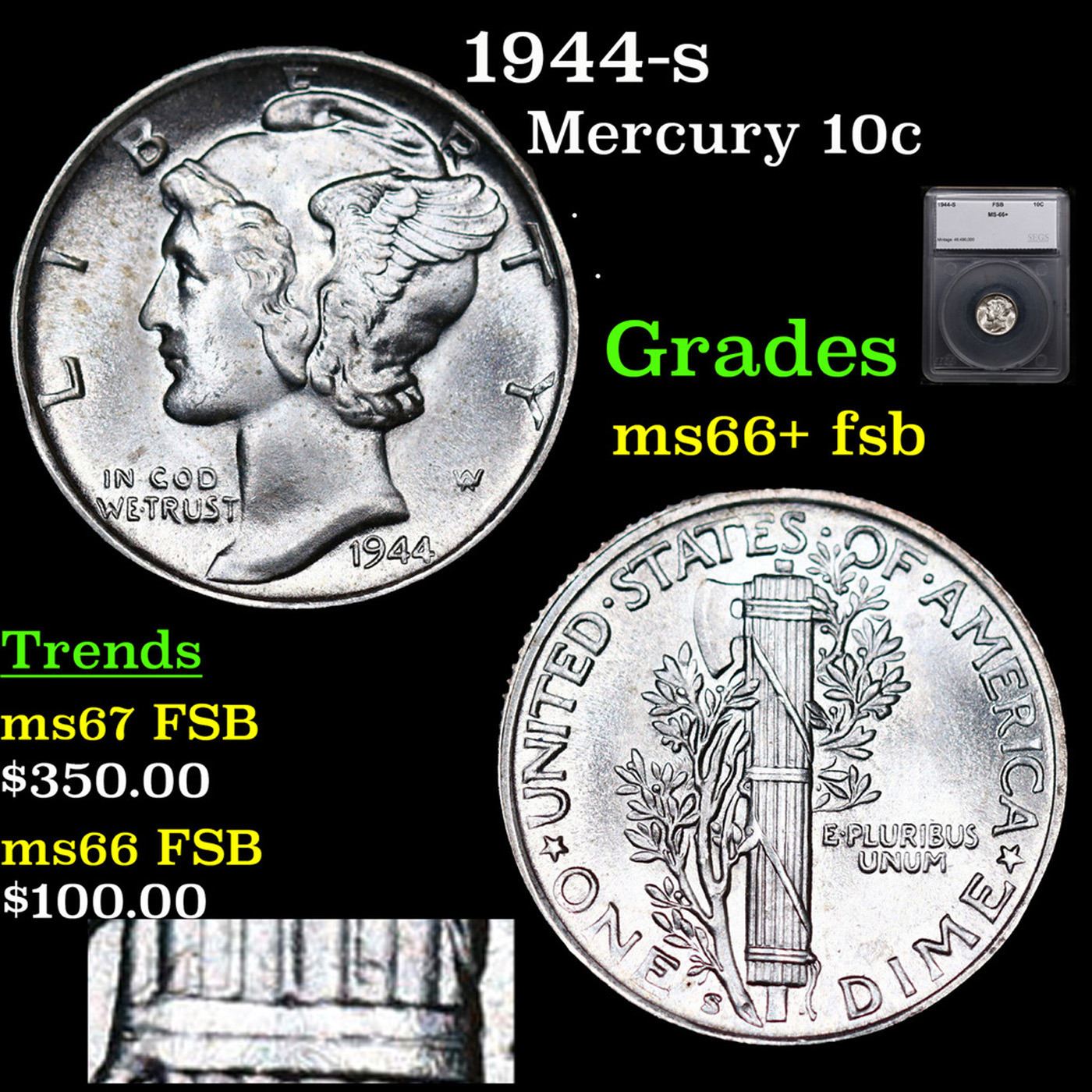 1944-s Mercury Dime 10c Graded ms66+ fsb By SEGS.