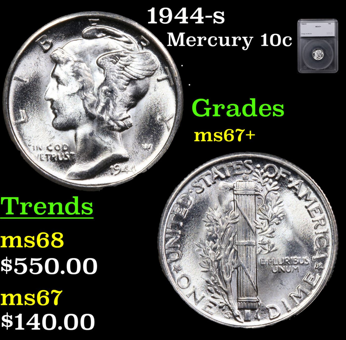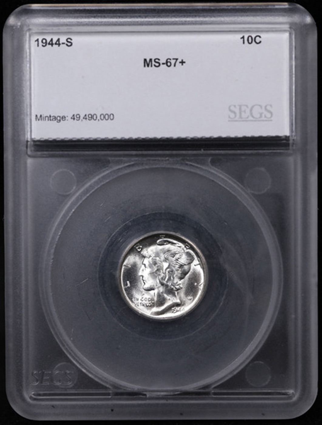 1944-s Mercury Dime 10c Graded ms67+ BY SEGS.