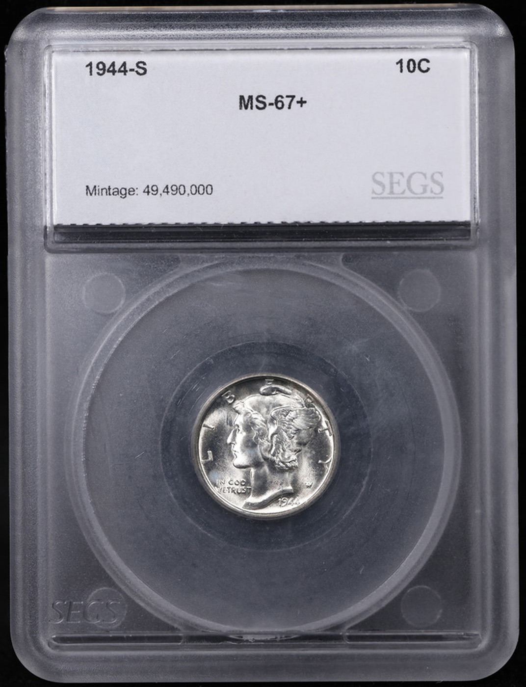 1944-s Mercury Dime 10c Graded ms67+ BY SEGS.