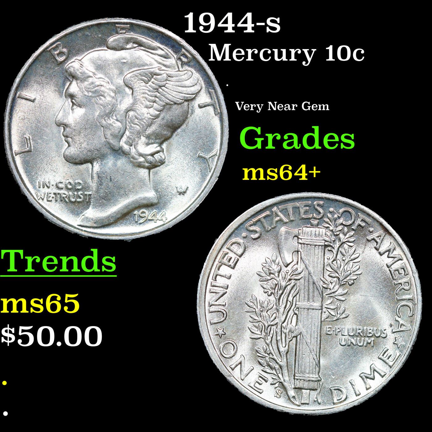 1944-s Mercury Dime 10c Grades Choice+ Unc.