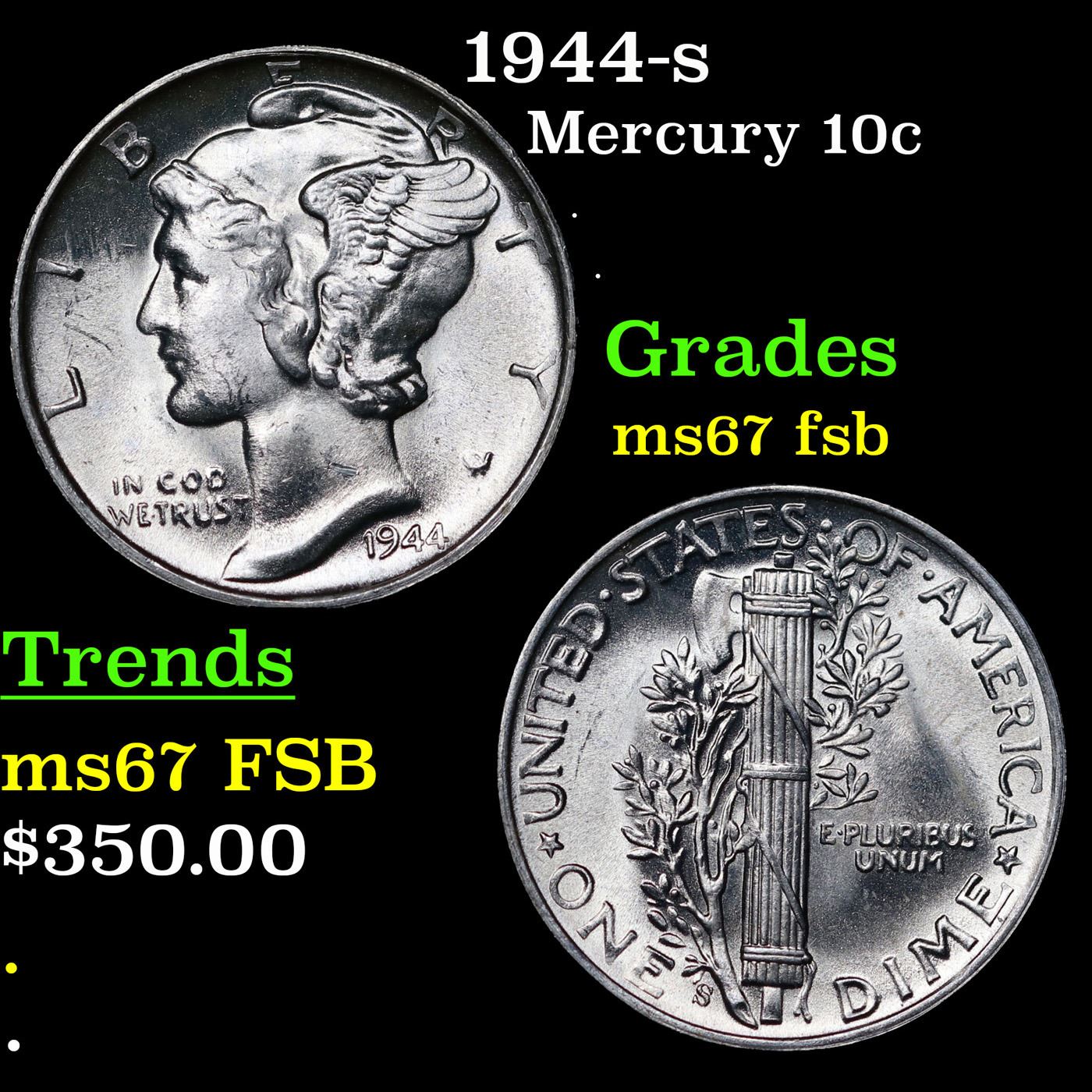 1944-s Mercury Dime 10c Grades GEM++ FSB.