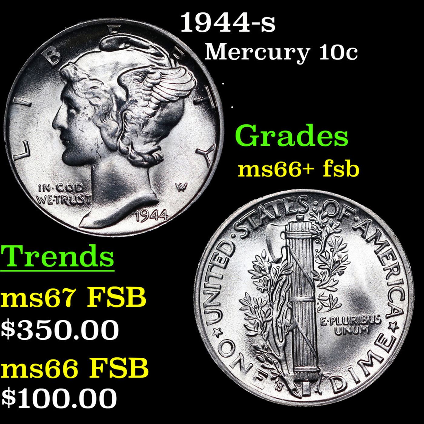 1944-s Mercury Dime 10c Grades GEM++ FSB.