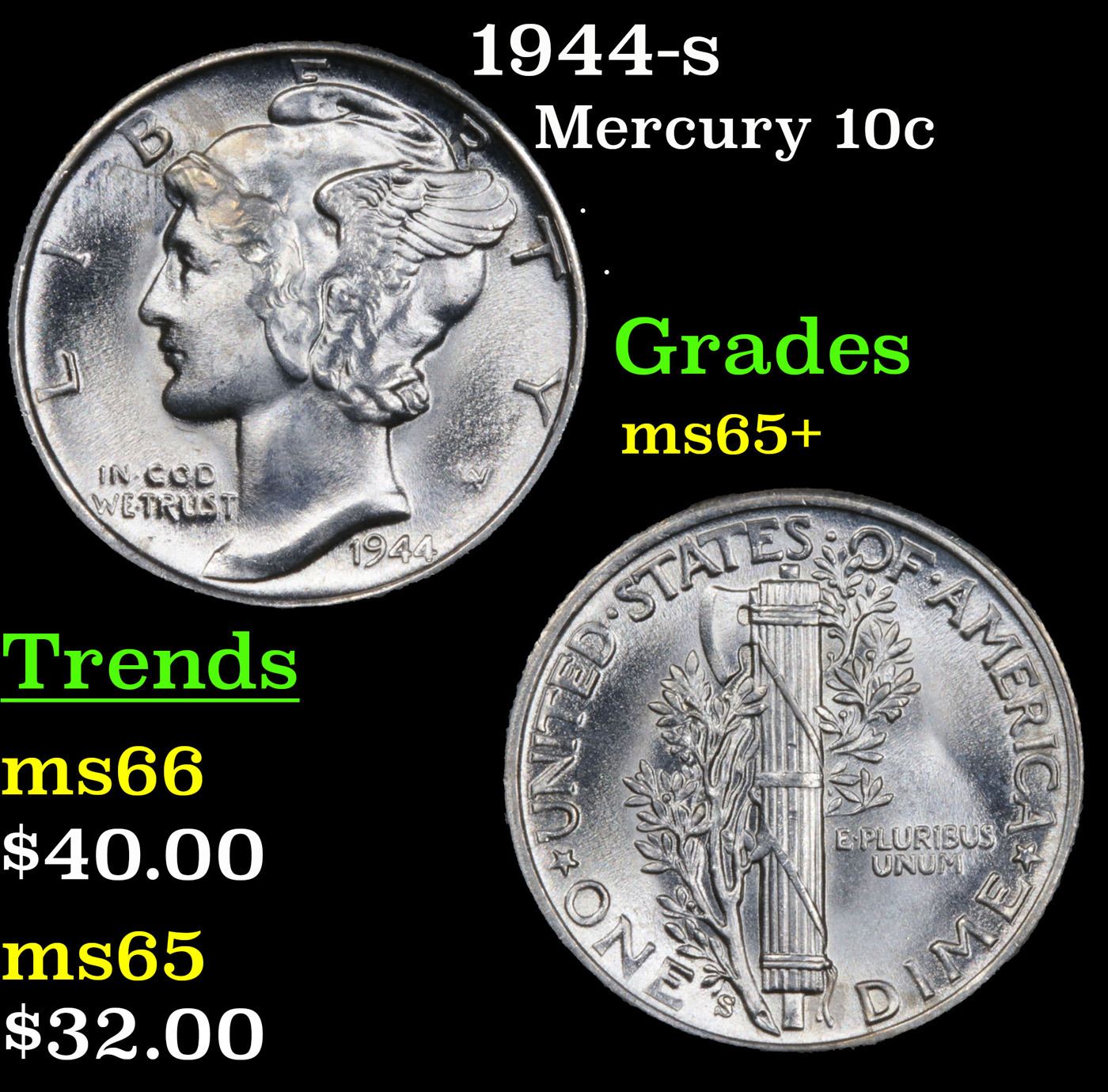 1944-s Mercury Dime 10c Grades GEM+ Unc.