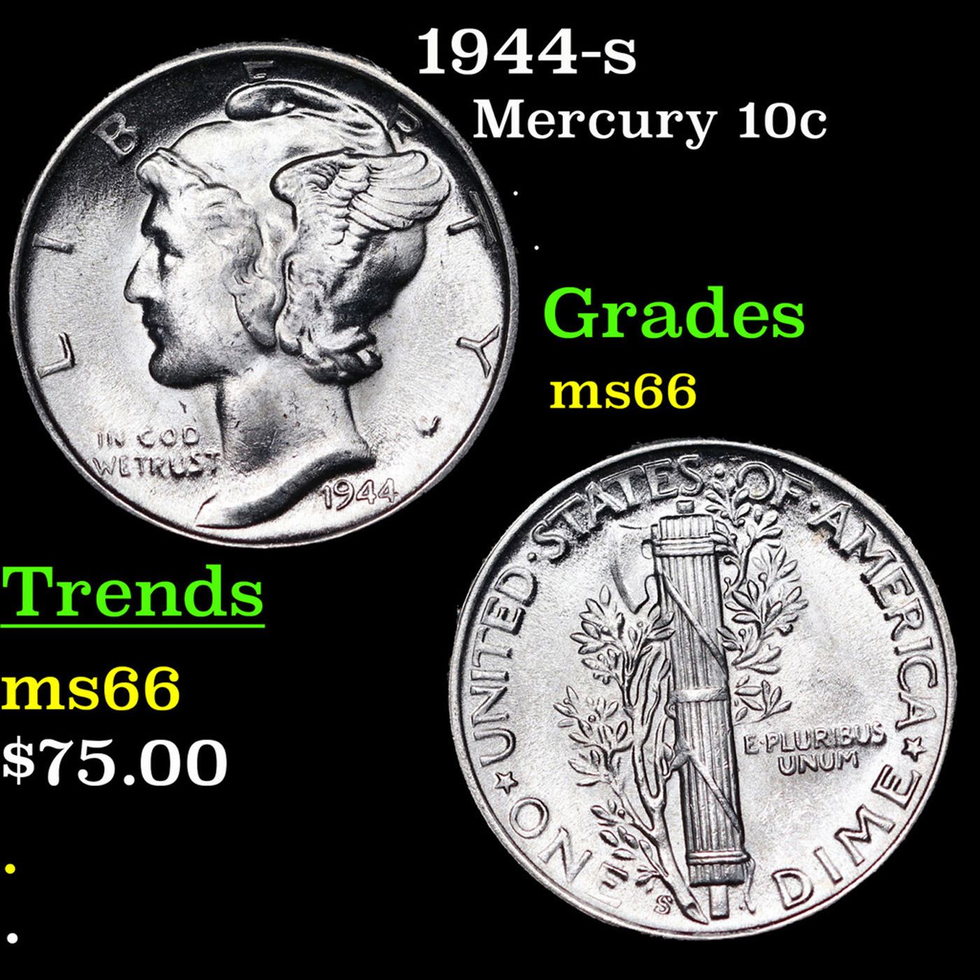 1944-s Mercury Dime 10c Grades GEM+ Unc.