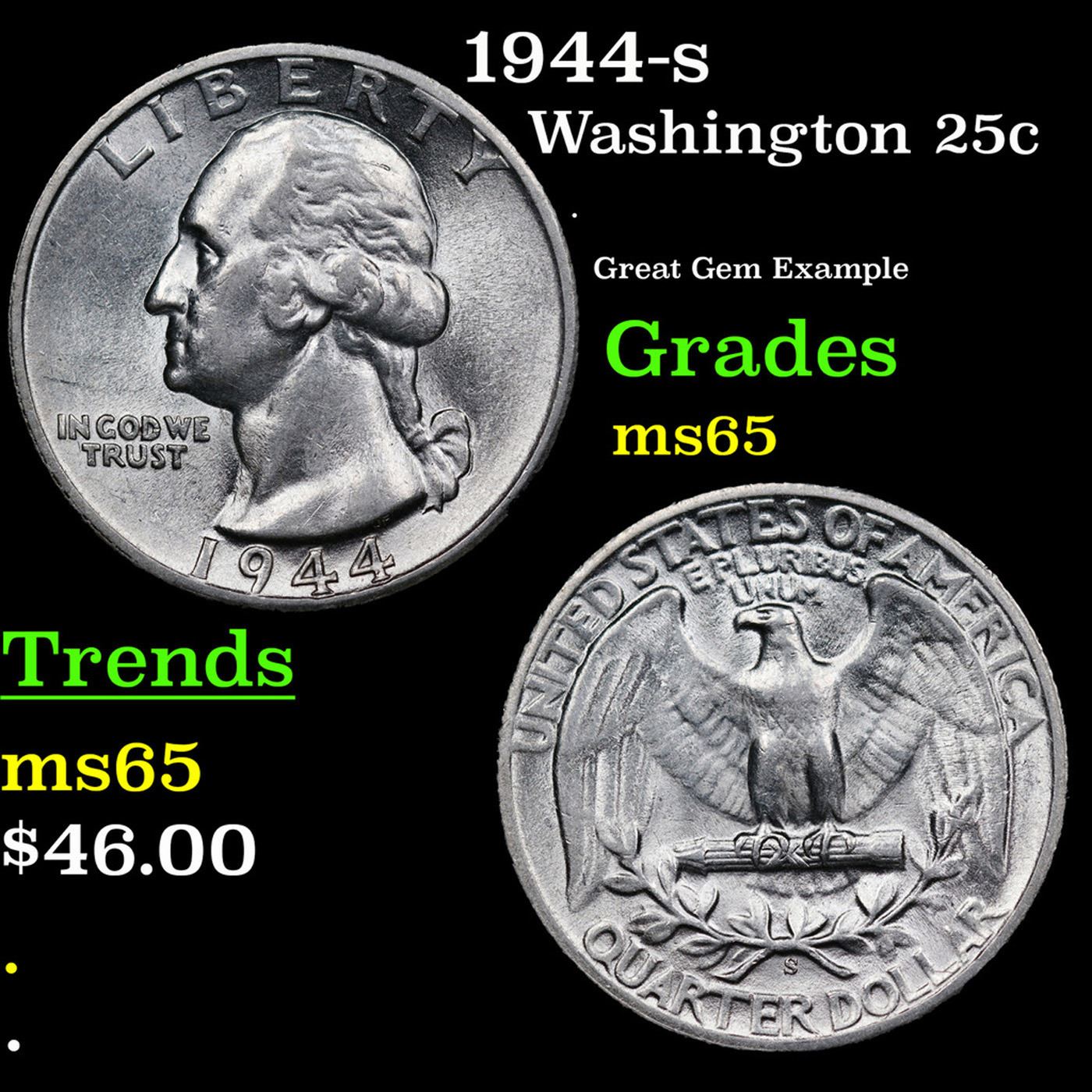 1944-s Washington Quarter 25c Grades GEM Unc.