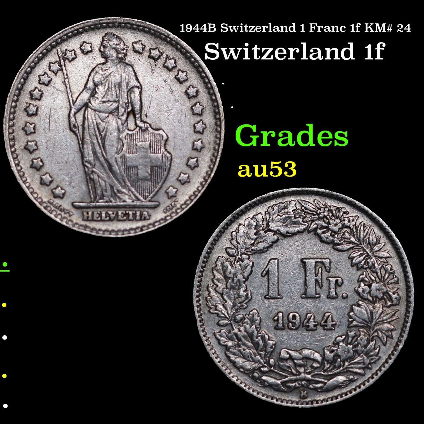 1944B Switzerland 1 Franc 1f KM# 24 Grades Select AU.