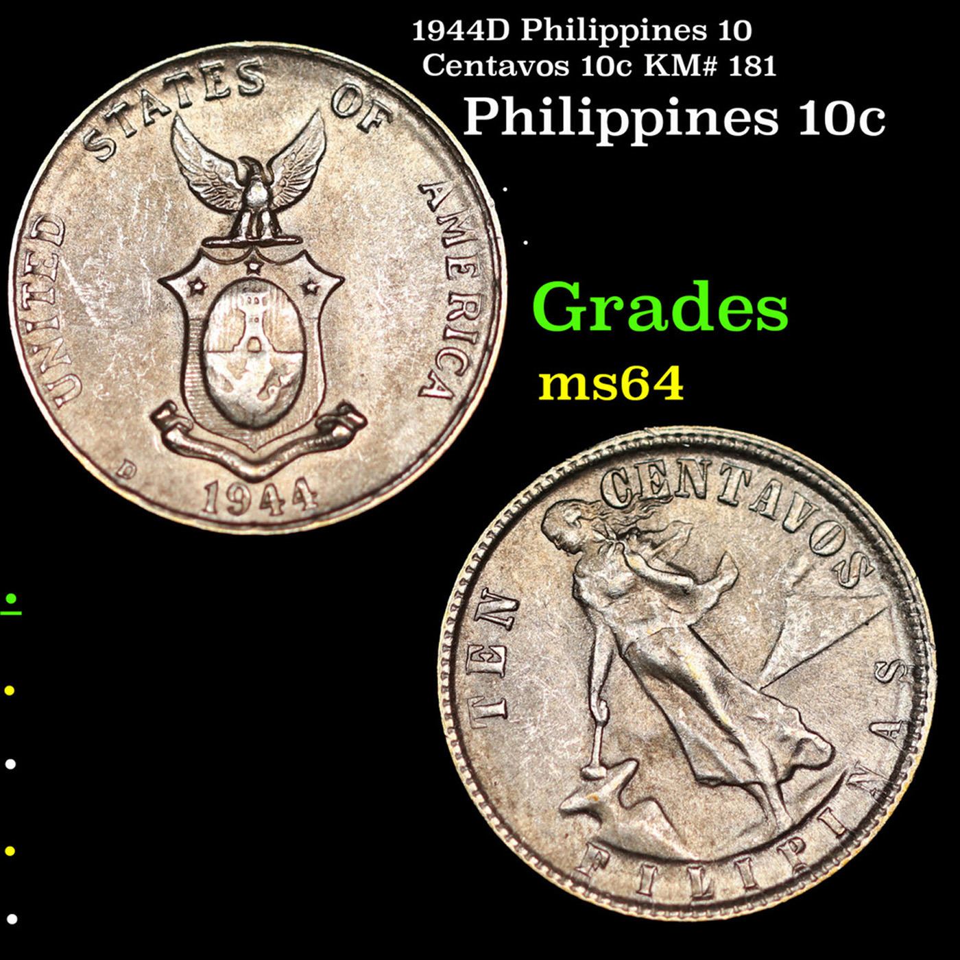 1944D Philippines 10 Centavos 10c KM# 181 Grades Choice Unc.