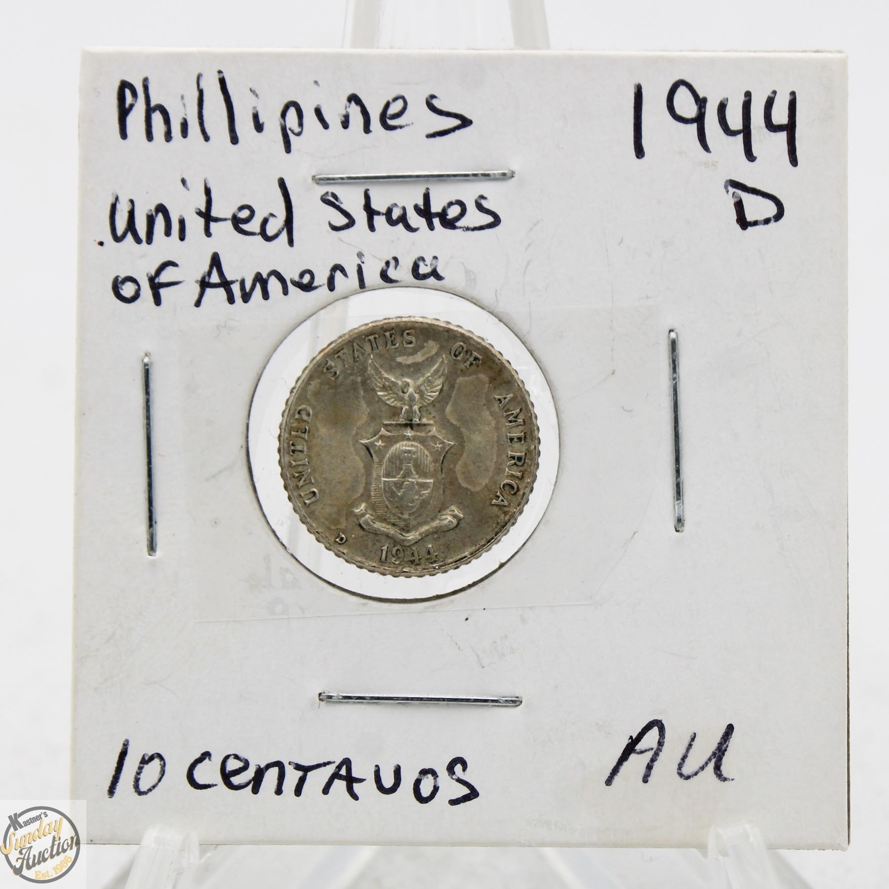 1944D SILVER WWII USA/PHILIPPINES 10 CENTAVOS