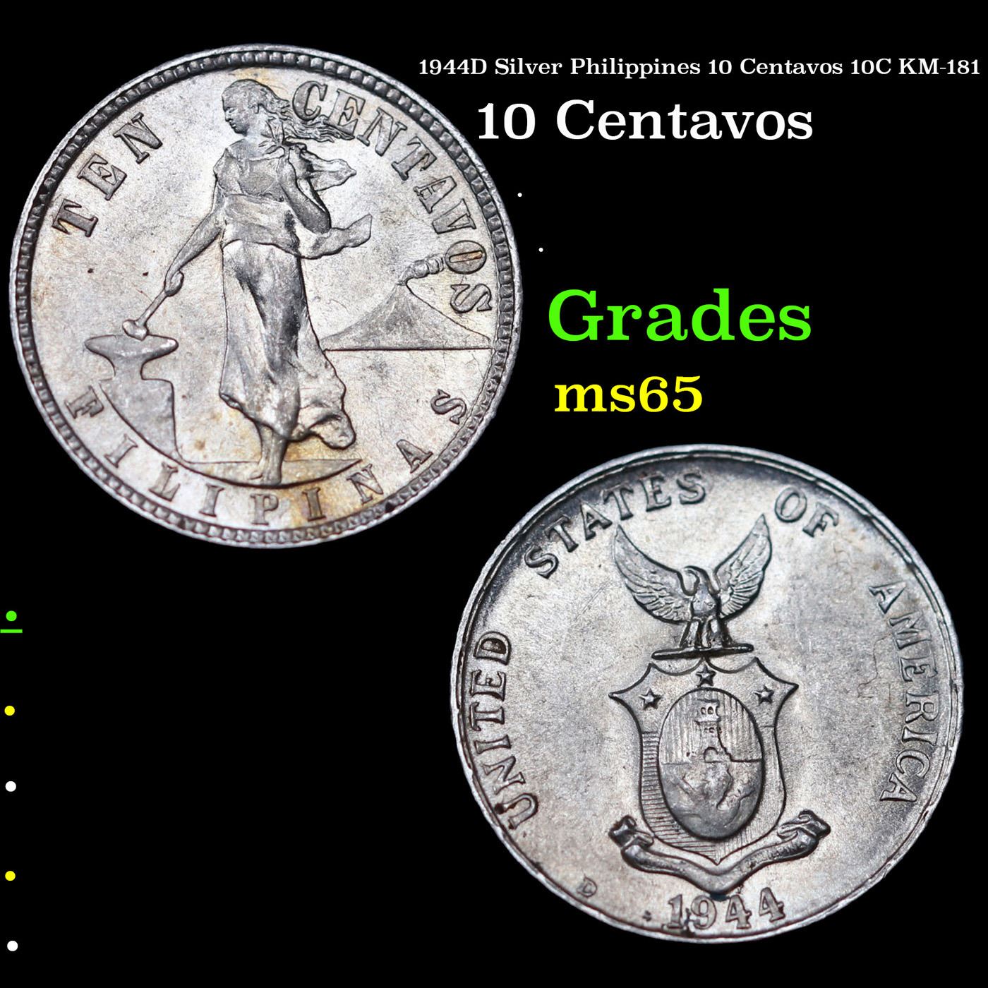 1944D Silver Philippines 10 Centavos 10C KM-181 Grades GEM Unc