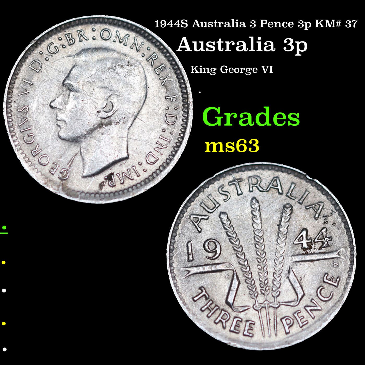 1944S Australia 3 Pence 3p KM# 37 Grades Select Unc.