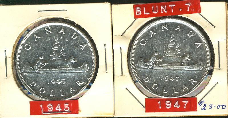 1945 $1, 1947 Blunt $1, both coins VF30.