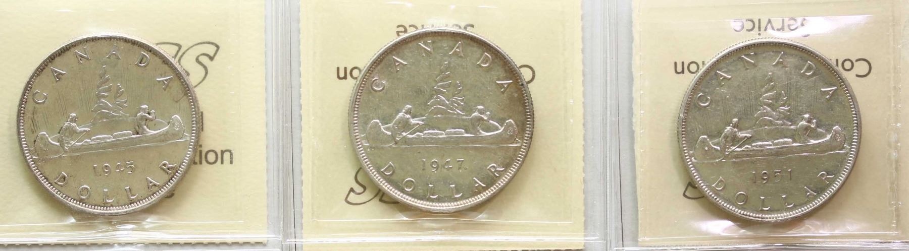 1945 $1, 1947 "ML - 2 X HP", 1951 "Arnprior" All 3 coins ICCS Choice About Uncirculated-55.