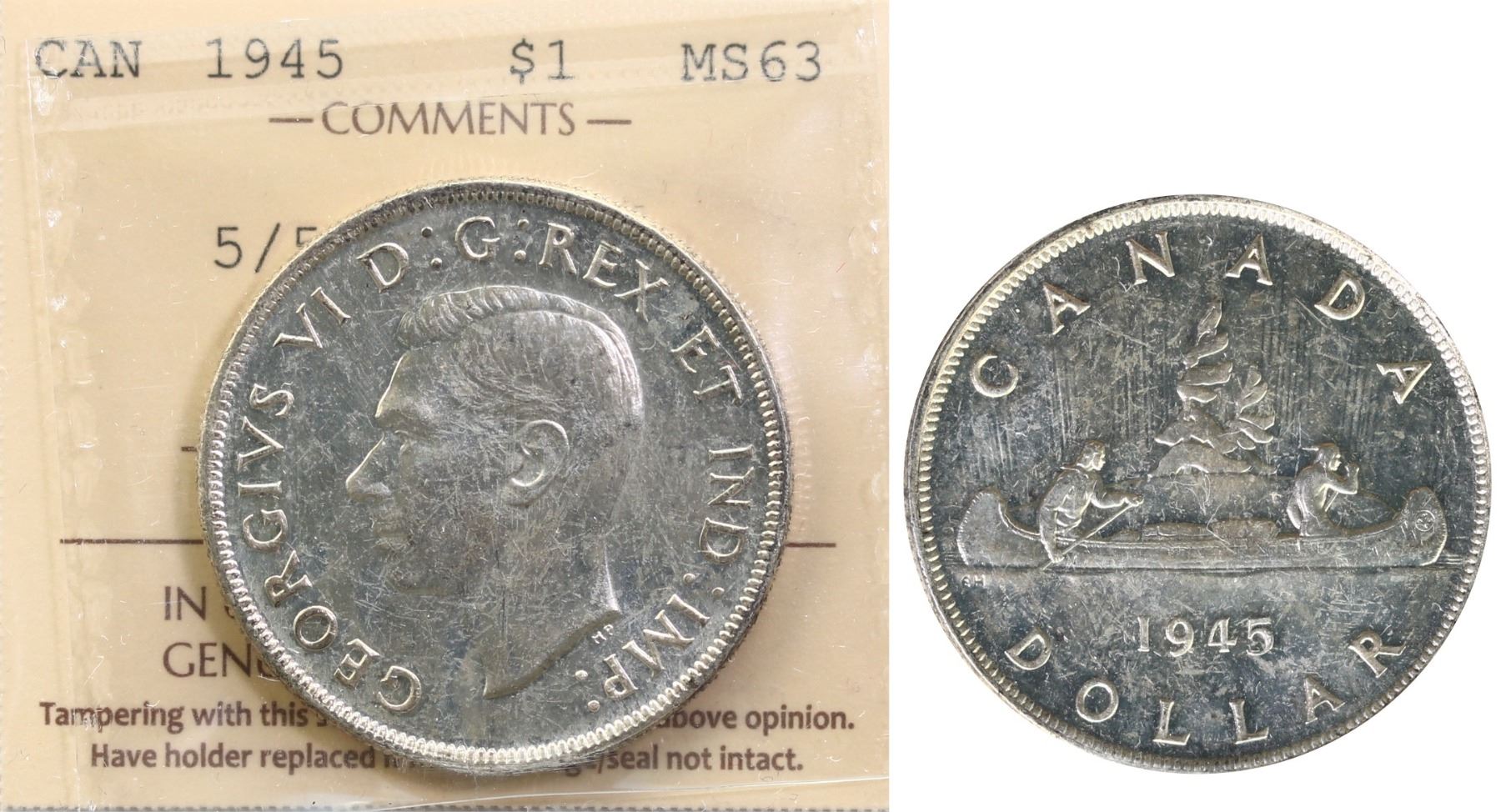 1945 $1 "5/5 DBL HP" ICCS Choice Mint State-63