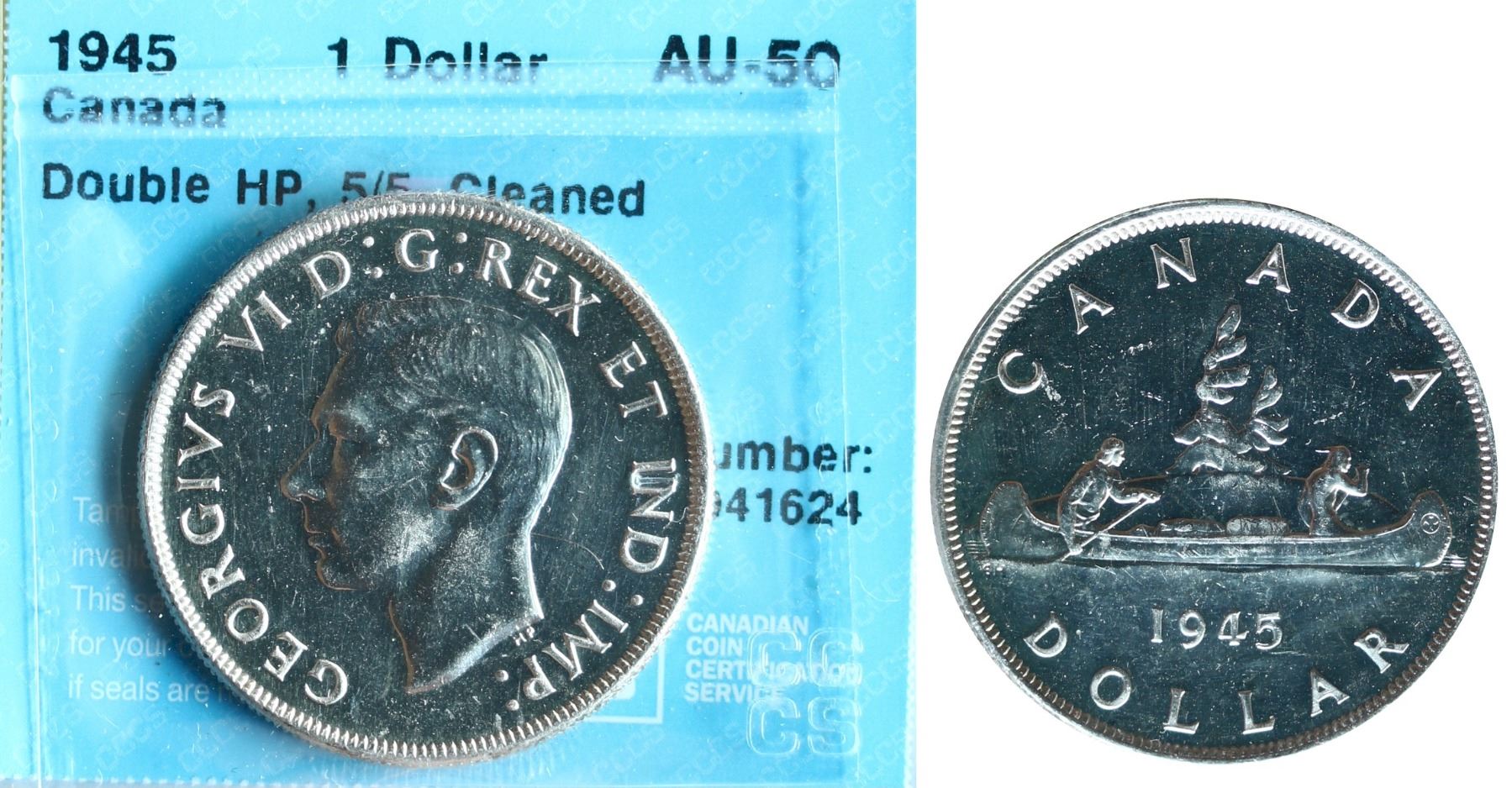1945 $1 "Dbl HP, 5/5" CCCS About Uncirculated-50 Cleaned
