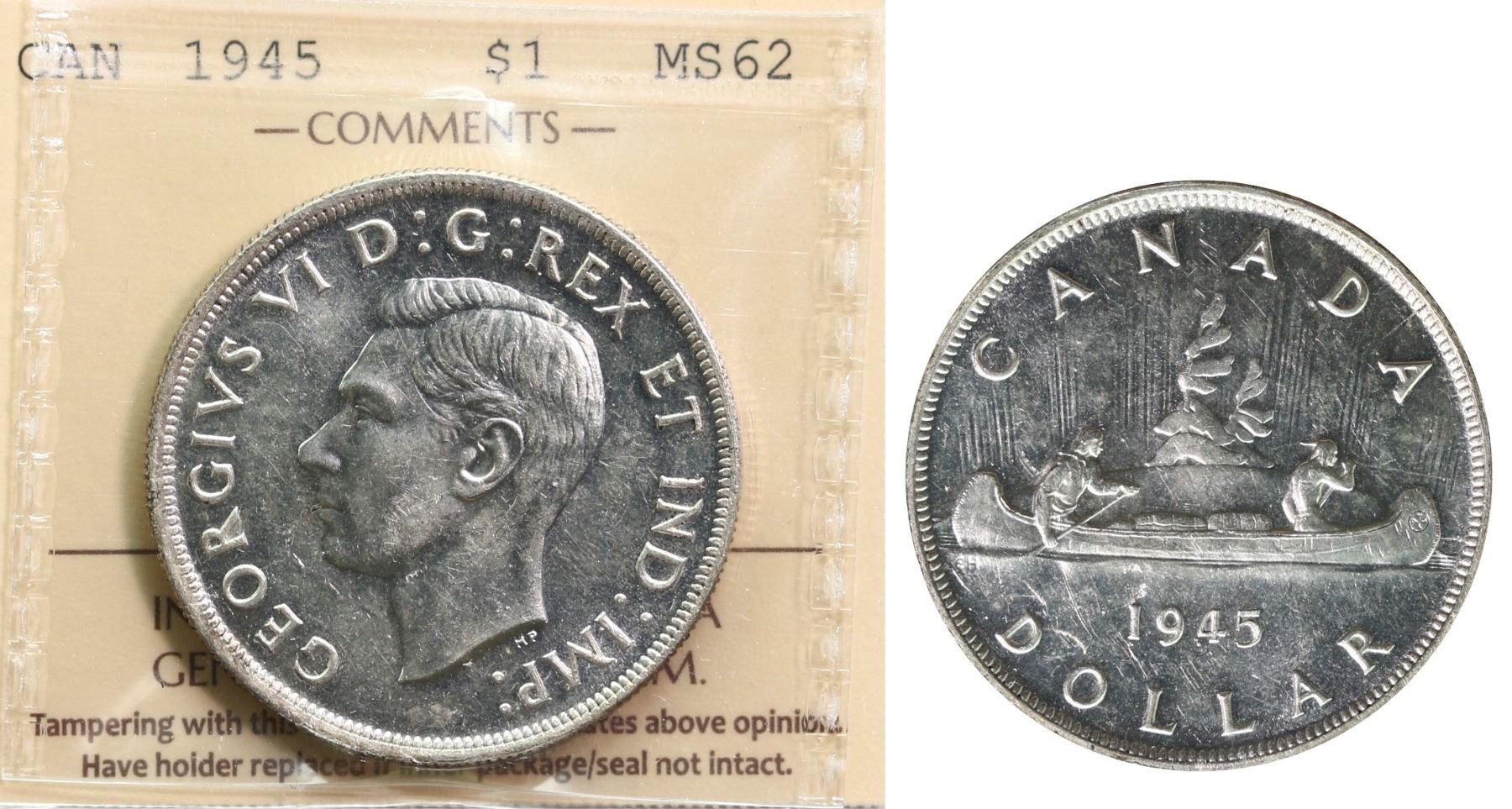 1945 $1 ICCS Choice Mint State-62