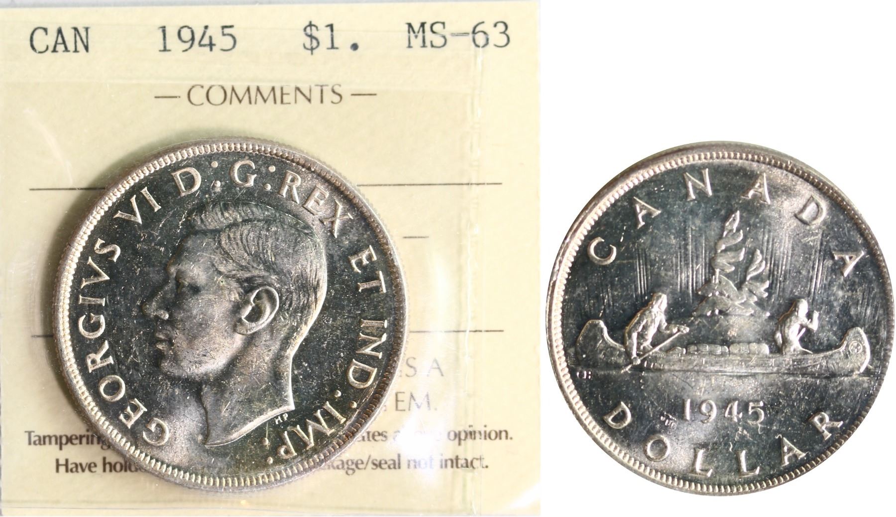 1945 $1 ICCS Choice Mint State-63 Strong and flashy lustre with hint of golden tone.