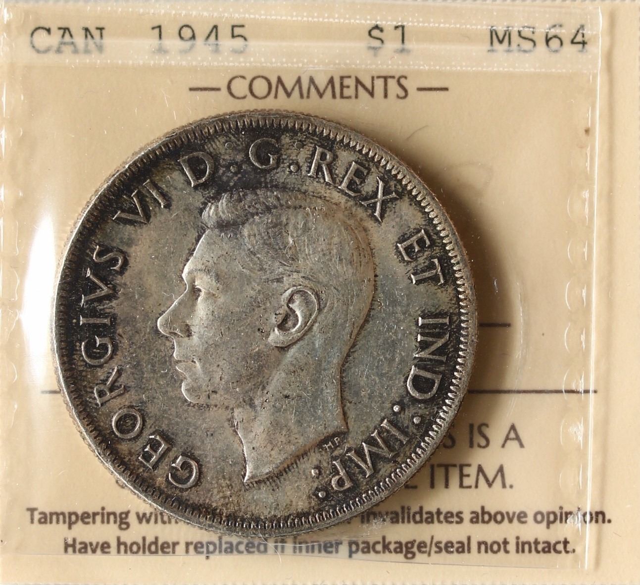 1945 $1 ICCS Choice Mint State-64 Not often seen in this desirable condition. Lightly toned.