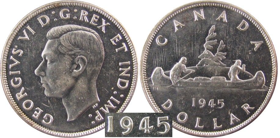 1945 $1 ICCS MS60. 1945 shows light overstrike on the 5 (5 over 5).