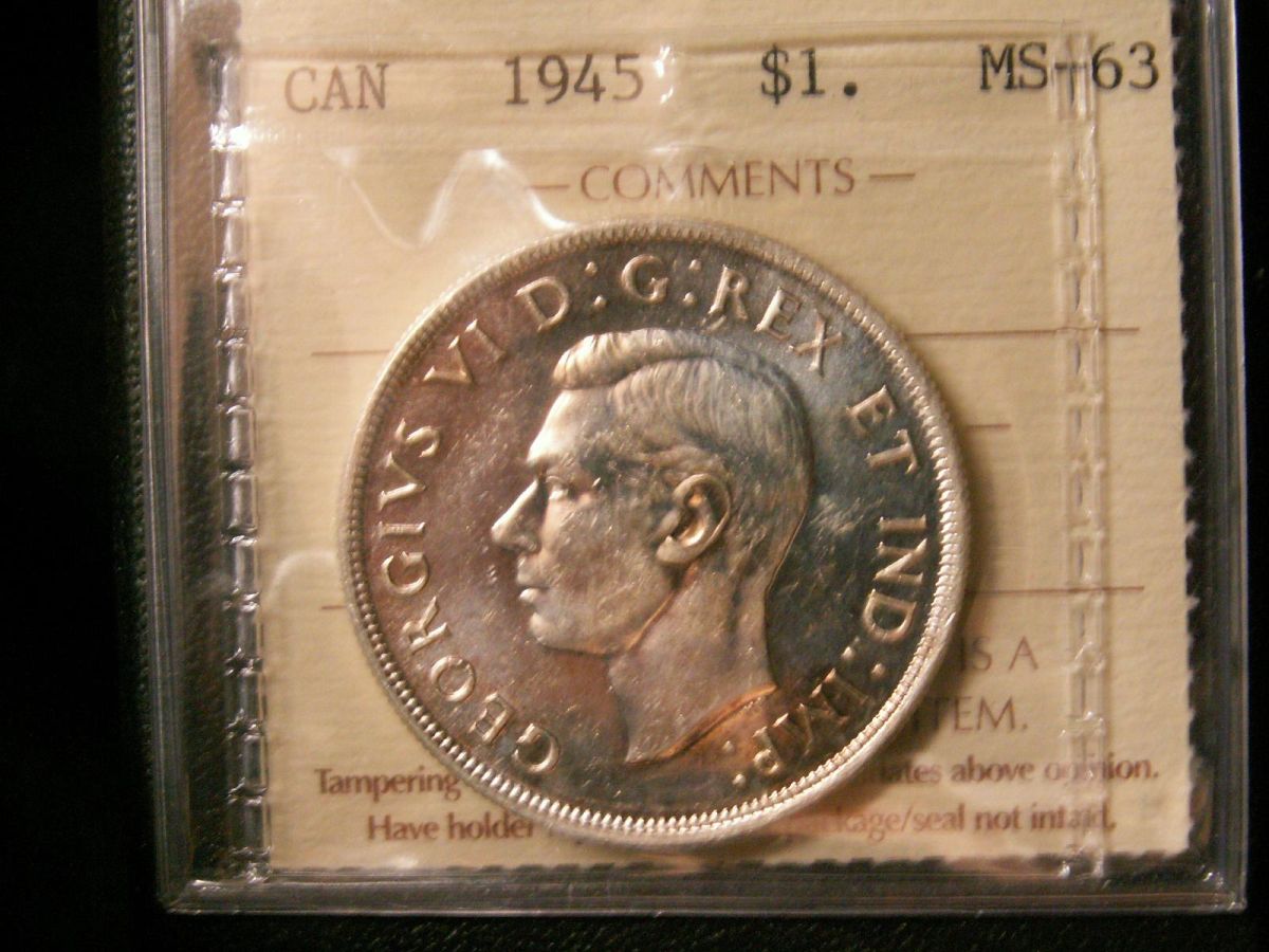 1945 $1 ICCS MS63. Brilliant and lustrous.