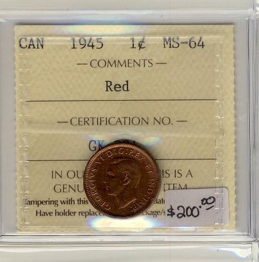 1945 1¢ ICCS MS64 Red
