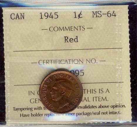 1945 1¢ ICCS MS64 Red