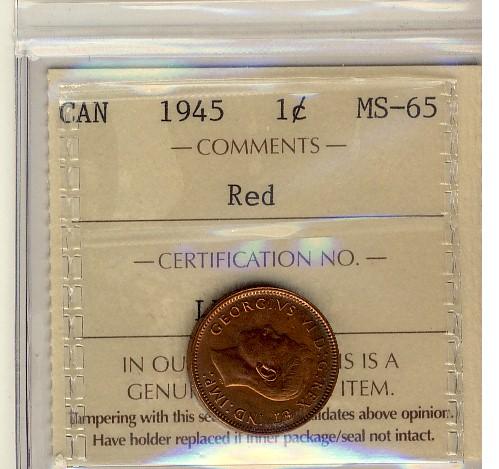 1945 1¢ ICCS MS65RD. Wine red issue.