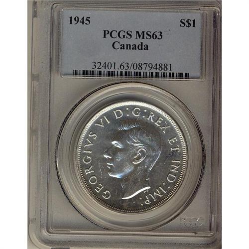 1945 $1 PCGS MS-63, brilliant with full luster. Key date