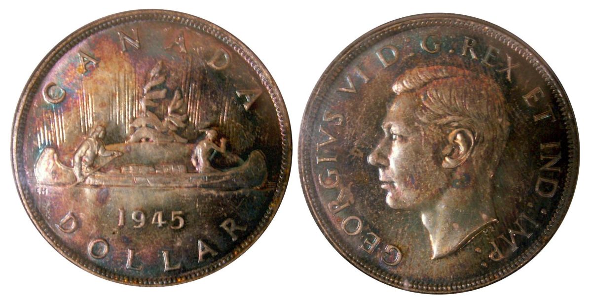 1945 $1 PCGS MS64, medium tone. A key date.