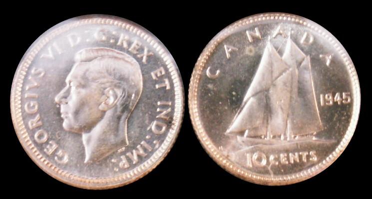 1945 10¢ ICCS MS65. Full white and lustrous.