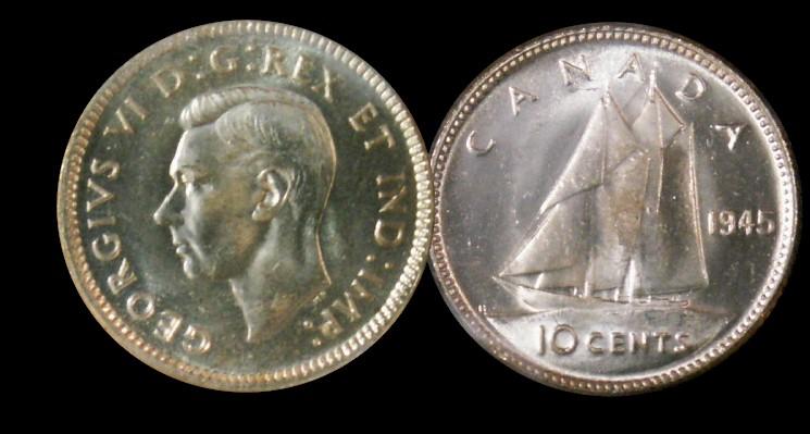 1945 10¢ ICCS MS65. Full white and lustrous.