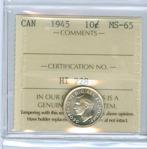 1945 10¢ ICCS MS65. Full white and lustrous.