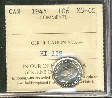 1945 10¢ ICCS MS65, fully white
