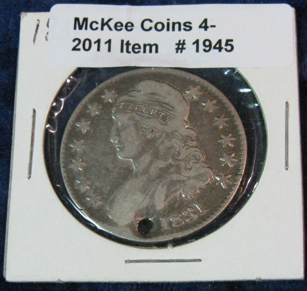 1945. 1831 Capped Bust Half Dollar. VF. Holed.