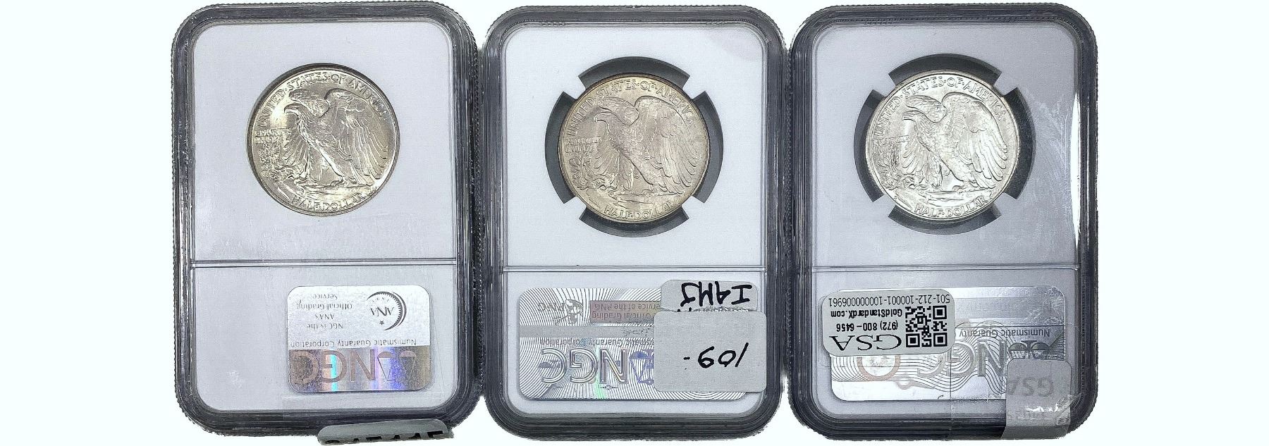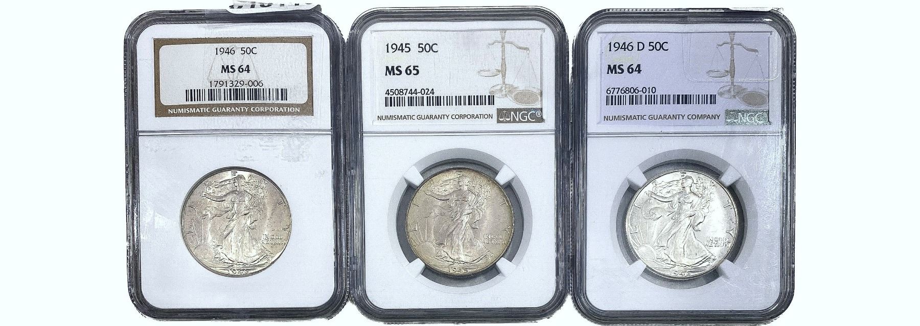 1945-1946 GEM BU Walking Lib Half Dollar[3Coins] NGC MS64/65