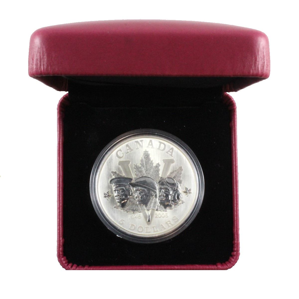 1945-2005 Double Privy Mark End of World War II Commemorative 1oz. Silver issued by the RCM. Comes in red Display Box and capsule. No Tax. Buyers Premium will be added on all items as per our terms of sale. We accept Paypal, Credit Card, E-Transfer Payments, Cheque or Money Orders (there is an additional 3% fee for using Paypal or Credit Card). All invoices will be emailed immediately following the auction, please contact us if you would like to pay by credit card or receive a new revised lower total for mailing in payment or sending an e-transfer (3% discount). All Items Are Sold "AS IS", no returns