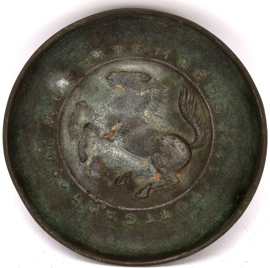 Item/Description: WWII German Bronze Commemorative Plate. Marked "Württemberg 1945 Stuttgart 1946" surrounded a central figure of a horse.