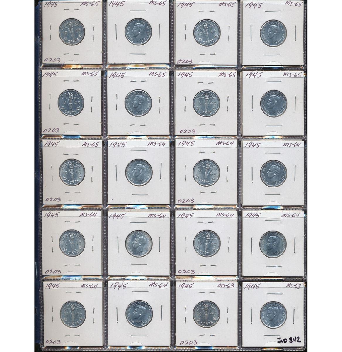 1945 5¢ BU Partial Roll Lot; includes 39 pieces all in 2x2's MS63 to MS65. A nice lot that should be inspected.