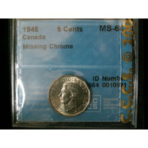 1945 5¢ MISSING CHROME CCCS MS-64, scarce var