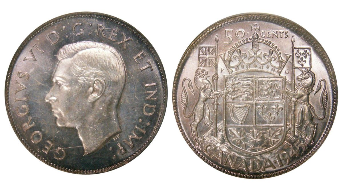 1945 50¢ Norweb PCGS MS65. Light purple rim tone.