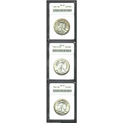 1945 50C MS65 ANACS; 1945-S MS65 ANACS; and a 1946 MS65 ANACS. All coins are fully frosted with dapp