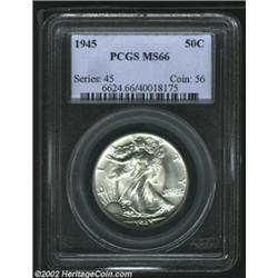1945 50C MS66 PCGS. Fully struck with bright, flashy mint luster. The surfaces are smooth and pristi
