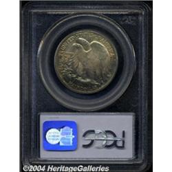 <B>1945<50C> MS66 PCGS.</B></I> Vividly toned in honey-gold, lime-green, ocean-blue, and peach-gray colors. Booming luster and a good strike further increase the eye appeal. A carefully preserved premium Gem from this victorious year in American history. <BR><BR><B>Important notice:</B> Heritage usually auctions material at the rate of 200-250 lots per hour. On some occasions eBay Live bid software or the Internet may not be able to keep up with the pace of the auction. We recommend placing a realistic absentee bid now as insurance to avoid disappointment. Occasionally the auctioneer may eliminate or reject an eBay Live bid, and the auctioneer may also reopen a lot after the close of the eBay live bidding (usually because we missed an audience bid), and may reject your bid even if it shows you as the winning bidder. By bidding via eBay Live, you agree that Heritage may award the lot to another bidder at its sole discretion under the circumstances described above or any other reasonable circumstances. Since eBay bids are not shown to us until we open the lot on the floor, we treat those bids just like floor bids. In most cases the floor responds before the eBay bid is presented to us, due to Internet lag time, so for consistency we have made it a policy that floor bids are always considered first over tie eBay live bids. Also please note that all Heritage lots purchased through eBay Live carry a 20% Buyer's Premium. Please make sure you read the Terms and Conditions before you bid. </span></font></tr></table></td></tr></table>