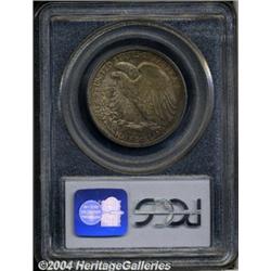 <B>1945<50C> MS66 PCGS.</B></I> Medium gray toning on the obverse features crimson, gold, and aqua accents, while the reverse is a blend of crimson, violet, and sea-green colors. The design elements reveal sharp strike definition throughout. Just a few light marks are apparent on the nicely preserved surfaces. <BR><BR><B>Important notice:</B> Heritage usually auctions material at the rate of 200-250 lots per hour. On some occasions eBay Live bid software or the Internet may not be able to keep up with the pace of the auction. We recommend placing a realistic absentee bid now as insurance to avoid disappointment. Occasionally the auctioneer may eliminate or reject an eBay Live bid, and the auctioneer may also reopen a lot after the close of the eBay live bidding (usually because we missed an audience bid), and may reject your bid even if it shows you as the winning bidder. By bidding via eBay Live, you agree that Heritage may award the lot to another bidder at its sole discretion under the circumstances described above or any other reasonable circumstances. Since eBay bids are not shown to us until we open the lot on the floor, we treat those bids just like floor bids. In most cases the floor responds before the eBay bid is presented to us, due to Internet lag time, so for consistency we have made it a policy that floor bids are always considered first over tie eBay live bids. Also please note that all Heritage lots purchased through eBay Live carry a 20% Buyer's Premium. Please make sure you read the Terms and Conditions before you bid. </span></font></tr></table></td></tr></table>