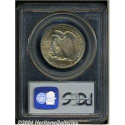 <B>1945<50C> MS66 PCGS.</B></I> Seemingly free from even the most distracting marks, this mottled blue, purple, and russet piece is as original as they come. <BR><BR><B>Important notice:</B> Heritage usually auctions material at the rate of 200-250 lots per hour. On some occasions eBay Live bid software or the Internet may not be able to keep up with the pace of the auction. We recommend placing a realistic absentee bid now as insurance to avoid disappointment. Occasionally the auctioneer may eliminate or reject an eBay Live bid, and the auctioneer may also reopen a lot after the close of the eBay live bidding (usually because we missed an audience bid), and may reject your bid even if it shows you as the winning bidder. By bidding via eBay Live, you agree that Heritage may award the lot to another bidder at its sole discretion under the circumstances described above or any other reasonable circumstances. Since eBay bids are not shown to us until we open the lot on the floor, we treat those bids just like floor bids. In most cases the floor responds before the eBay bid is presented to us, due to Internet lag time, so for consistency we have made it a policy that floor bids are always considered first over tie eBay live bids. Also please note that all Heritage lots purchased through eBay Live carry a 20% Buyer's Premium. Please make sure you read the Terms and Conditions before you bid. </span></font></tr></table></td></tr></table>