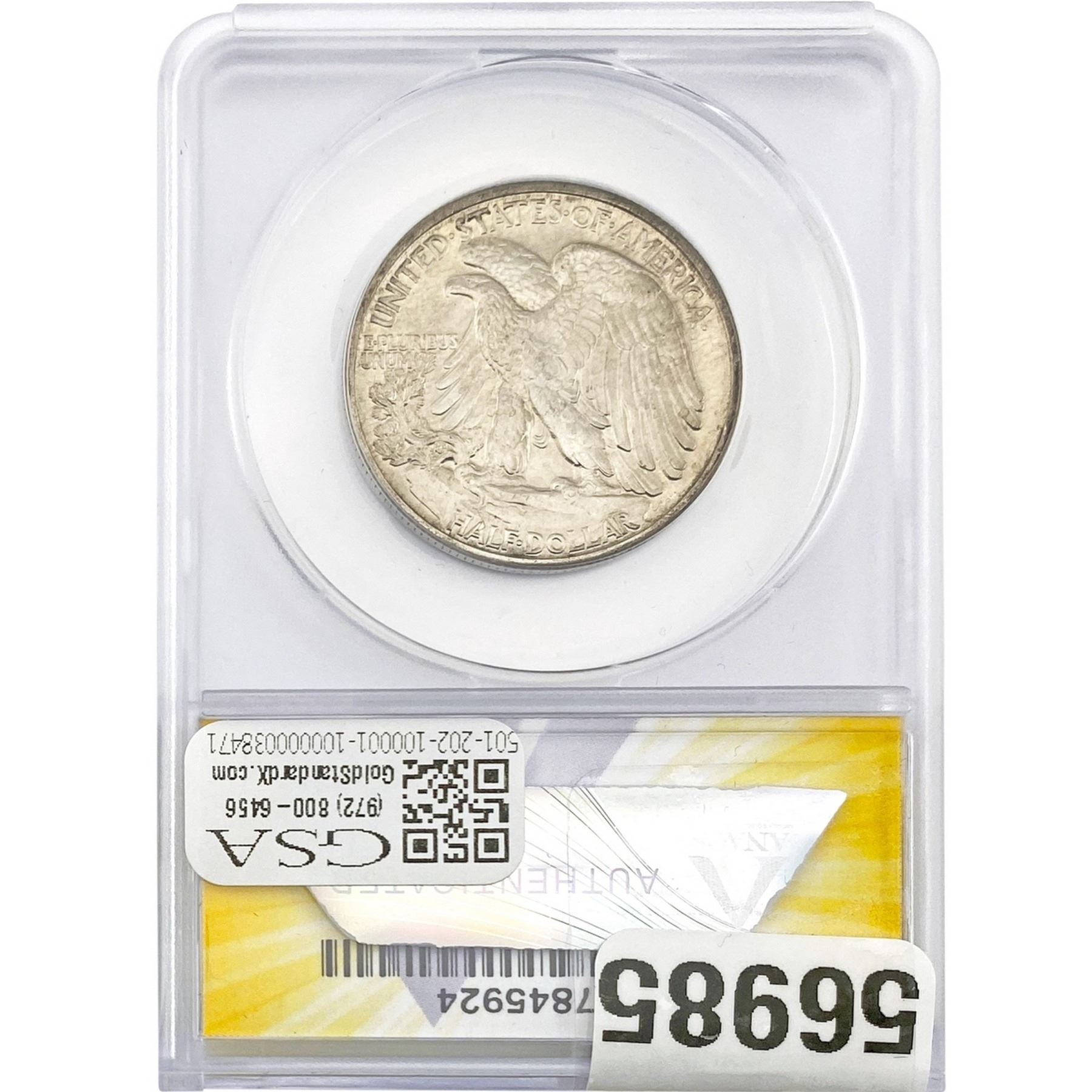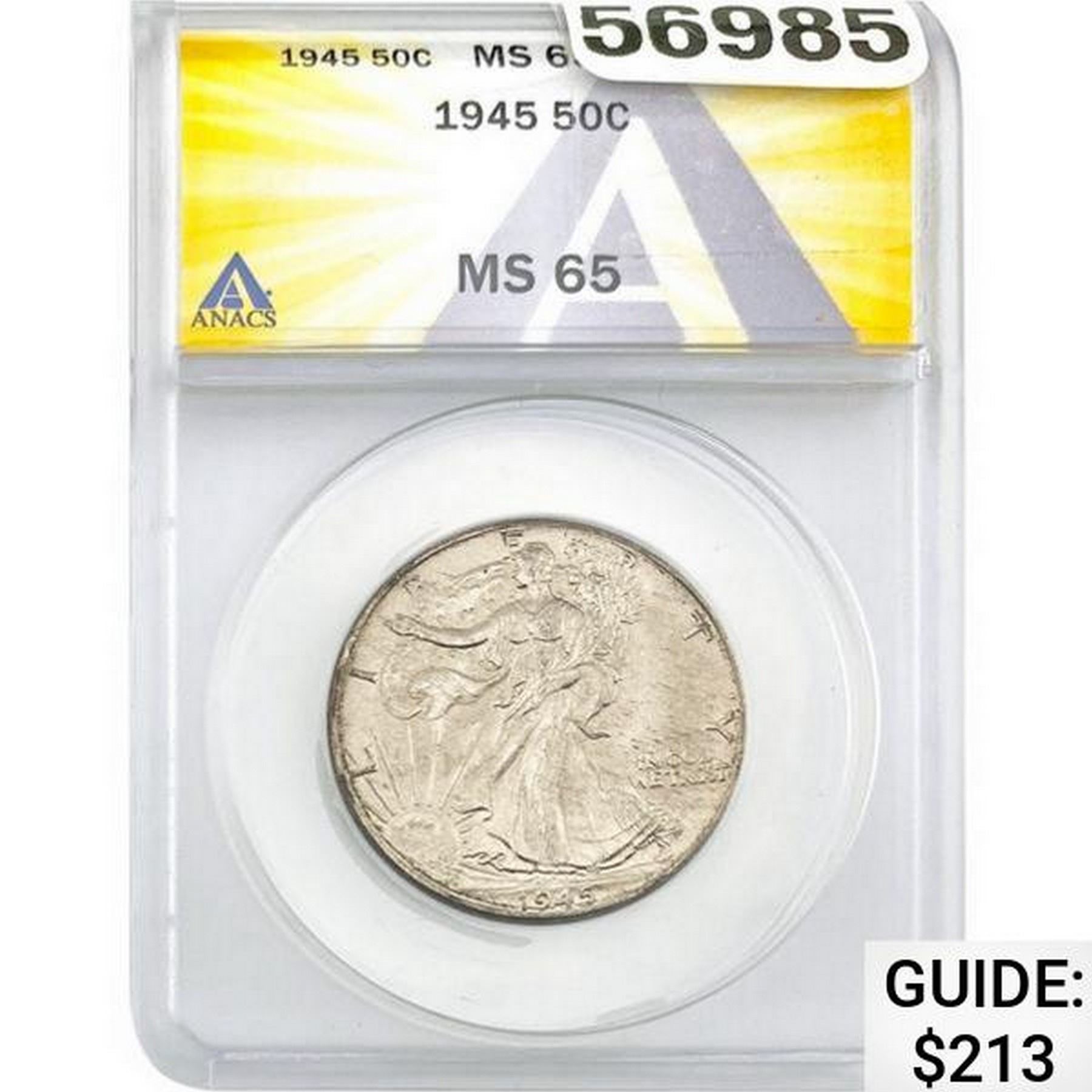 1945 50C Walking Liberty Half ANACS MS65