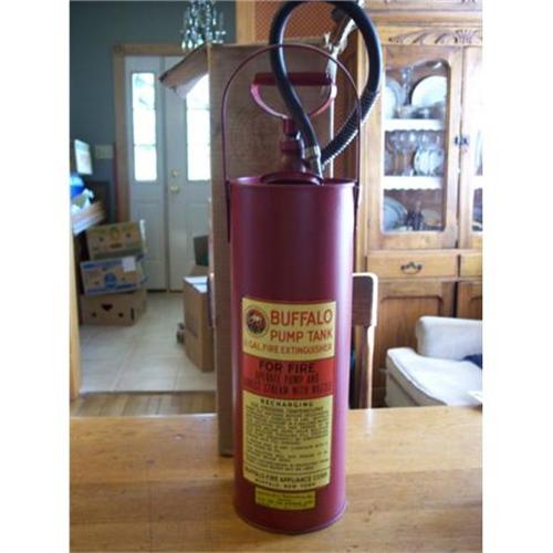 This is an old Fire extinguisher pump tank-2 1/2 Gallon from 1945 that has never been used.Has it's original box that it came in.Great graphics and a wonderful item for the fire collector.Will be boxed in another box so as not to damage the original.Does have 1 tear/hole on the original box.